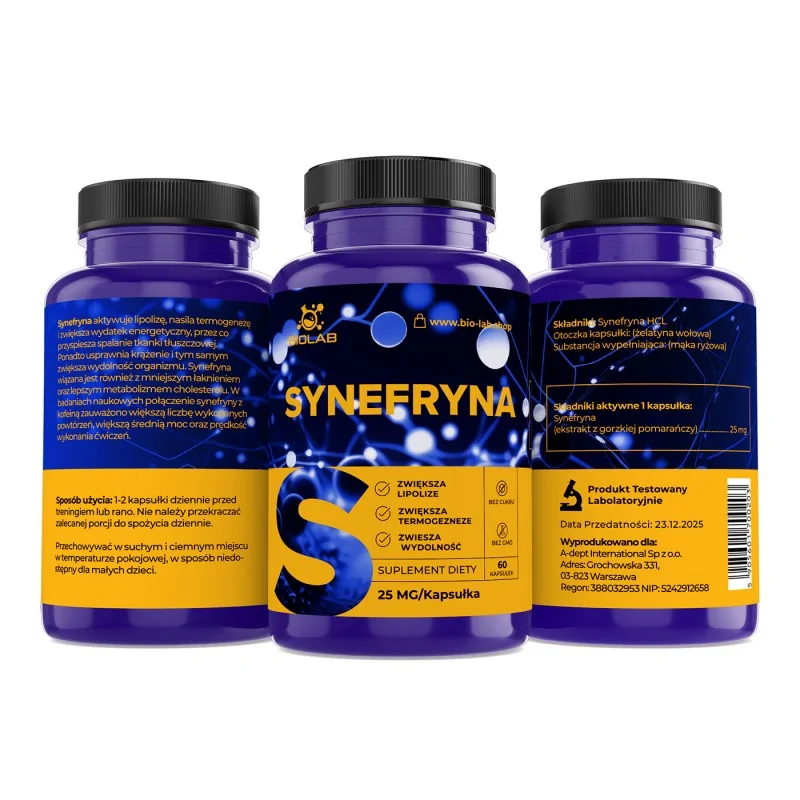 Synefrin är en biogen amin som finns naturligt i skalen på citrusfrukter, såsom pomerans. Extrakt från dessa växter har värderats i århundraden för sina effekter på processer relaterade till ämnesomsättningen och ökar kroppens övergripande vitalitet.