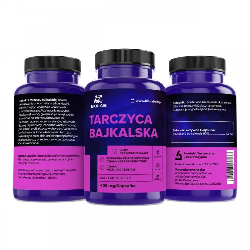 Ingredienser: Scutellaria baicalensis extrakt 80% 400mg, gelatinkapsel, rismjöl.