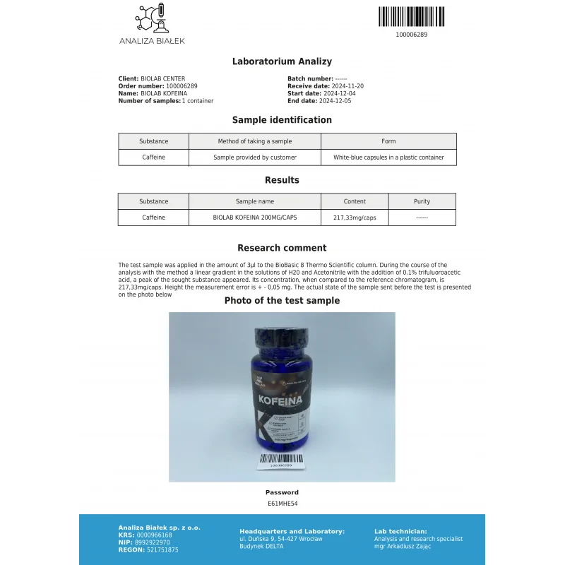 Ingredienser: Vattenfritt koffein 200 mg, gelatinkapsel, rismjöl