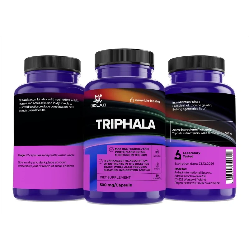 Triphala är en traditionell blandning av tre växter med ursprung i Indien: Amalaki, Bibhitaki och Haritaki. I tillskott värderas det främst som en växtbaserad formel för att stödja matsmältningskomfort, regelbundenhet och en känsla av lätthet. Det är ett alternativ för dem som vill införliva en ingrediens med en lång historia av användning och en modern "wellness"-profil i sin rutin.
